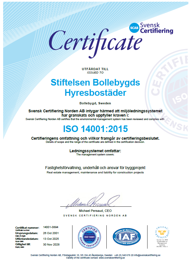 Företagen i nätverket är certifierade för miljöledningsstandarden ISO 14001:2015. Svensk Certifiering Norden AB är det certifieringsorgan som varje år reviderar nätverket miljöledningsarbete. De genomförde sin årliga revision under 2025.